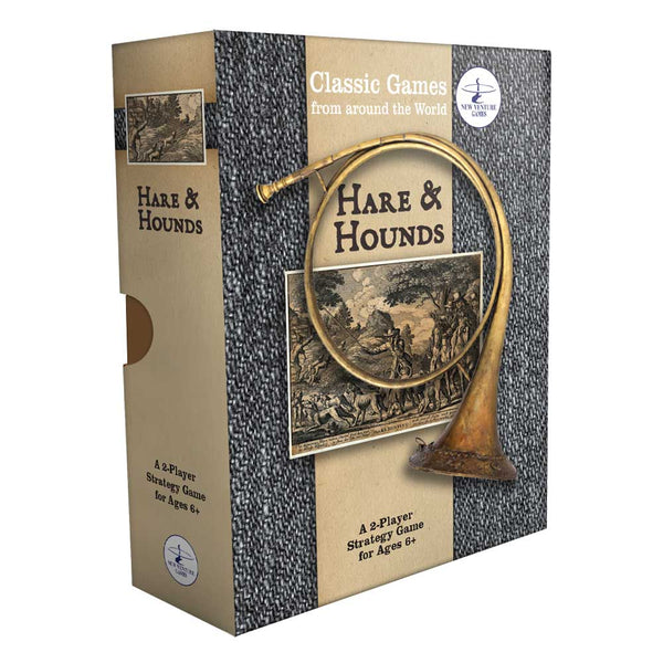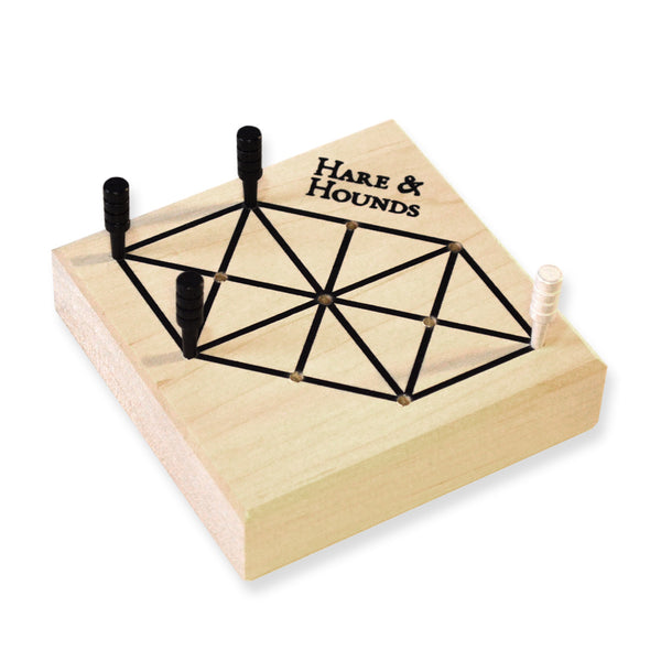 An English version of “The French Military Game”), this little puzzle game first appeared in eastern France in the late 19th century. In the midst of the Franco-Prussian War the French soldiers found a challenging little game to play in the quieter moments of the conflict. Early on, the game was known simply as the “Military Game,” but later came to England where it became known as “Hare and Hounds.” It’s the smallest of the “hunt games” but an interesting challenge nonetheless. Made in USA for 2 players age 6+.