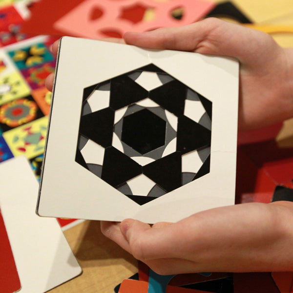 Contrast introduces black & white geometric patterns onto the same die-cut cards as our Kaleidograph Crystal set. Combine Contrast with one of our award-winning color sets (Crystal and Flora) to create a nearly infinite number of exciting designs, or try to match designs on the enclosed poster. Made in the USA, for ages 5+.