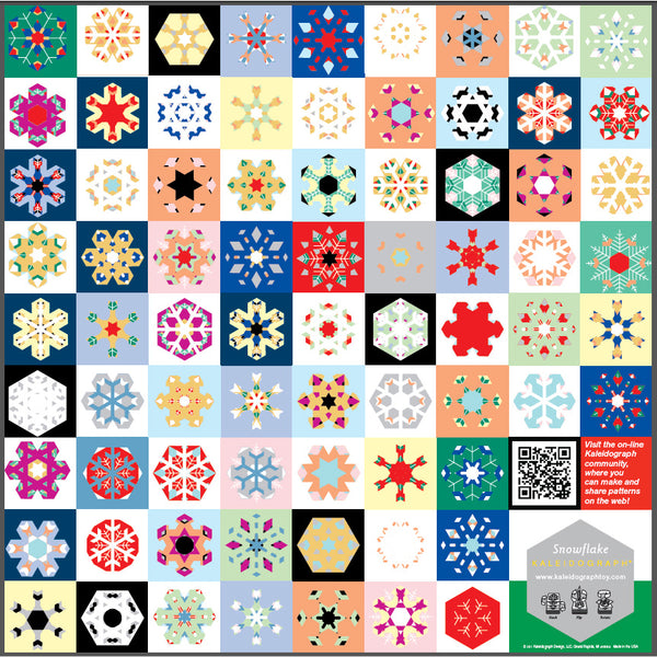 The 10 die-cut (plus 2 background cards) of Kaleidograph® Snowflake can be arranged into over a trillion unique, crystalline, snowflake designs. Explore the crystalline beauty of snowflakes and display your creations as seasonal decoration. For family fun, try to match the designs on the enclosed poster to challenge yourself and others. Made in USA. For ages 5+.
