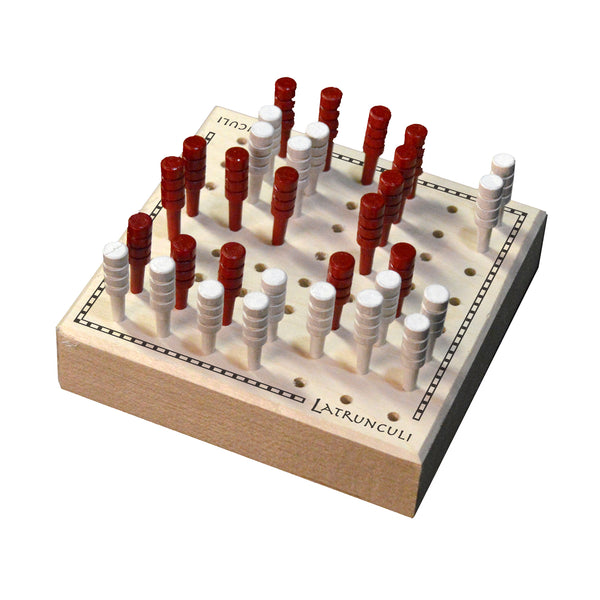A two-player strategy game was played throughout the ancient Roman Empire as early as the first century AD. A descendant of earlier Greek board games, Ludus lantrunculorum, more commonly called Latrunculi, is from the Latin meaning “game of the brigands.” Made in USA for two players age 6+.