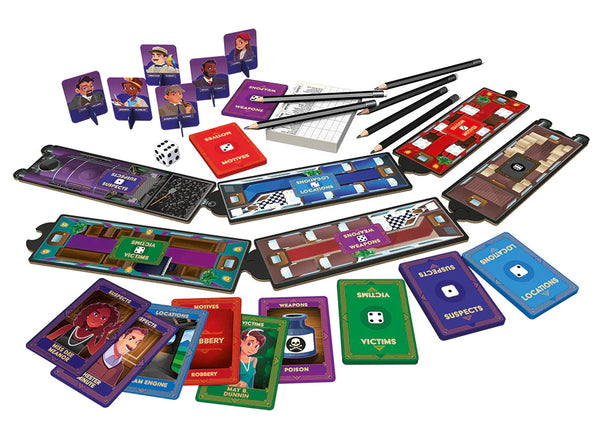 Mystery Train tests your powers of deduction in a classic whodunit mystery game! A crime has been committed… and only you can solve it. Play the role of a famous detective – as Sheerluck Homes and Missing Marbles to Hercules Parrot or Ivan Inkling – moving from carriage to carriage collecting clues and trying to fit the pieces of the puzzle together. Classic family fun, it’s a race to reveal who did the dastardly deed! Contains a 6-section playing board, 6 sleuth pawns, 35 evidence cards, 1 pad of sleuthing sheets, 6 pencils, and 1 die. Made in Canada for 2-5 players age 10+.