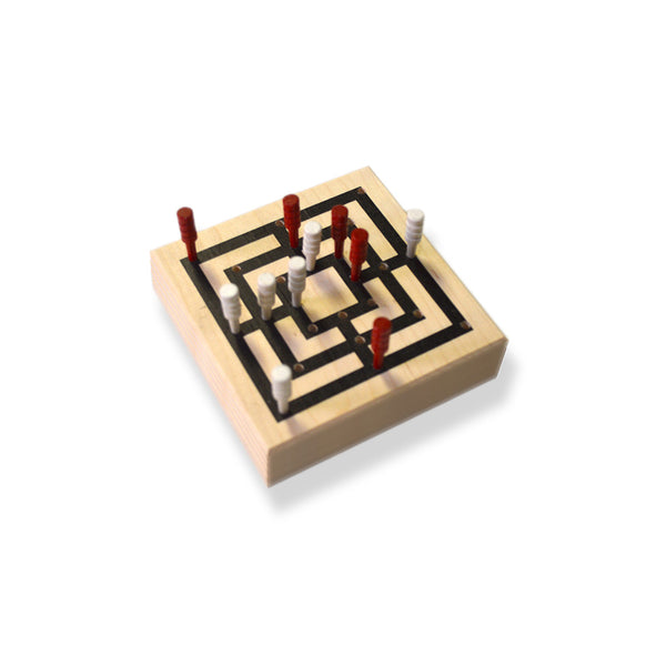A strategy board game for two players dating at least to the Roman Empire. Players form a row or column of three, then remove an opponent's piece. The object is to leave your opponent with either two pieces or zero moves!The game is also known as nine-man morris, mill, mills, the mill game, merels, merrills, merelles, marelles, morelles, and ninepenny marl in English. Made in the USA for 2 players age 6+.