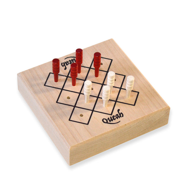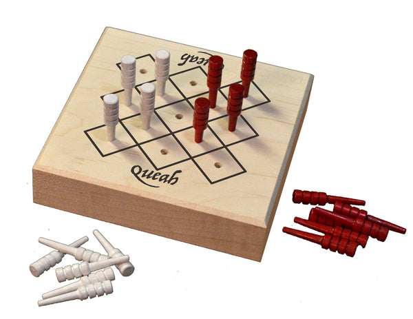 Queah is a board game from Liberia. It's a jump-and-capture game of the kind found in every culture as far back as recorded history. The game is identified with the Queah tribe, and has no other name than that. Made in the USA for two players age 6+.