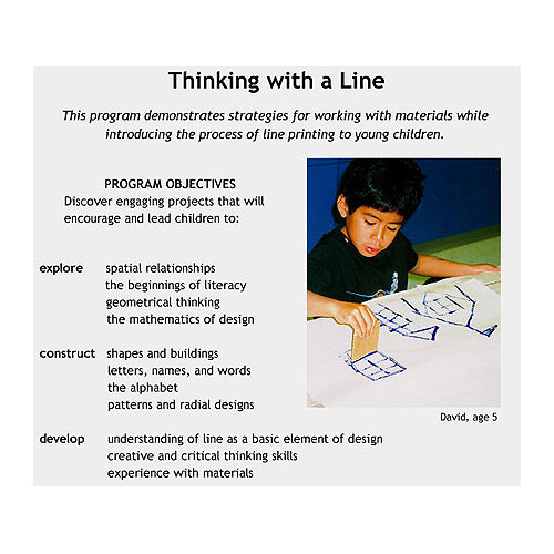Thinking with a Line is an innovative printmaking approach with effective, developmentally appropriate activities for increasing visual learning, motor skills, language development, and critical thinking ... simultaneously fulfilling curriculum requirements for art, math, and literacy.