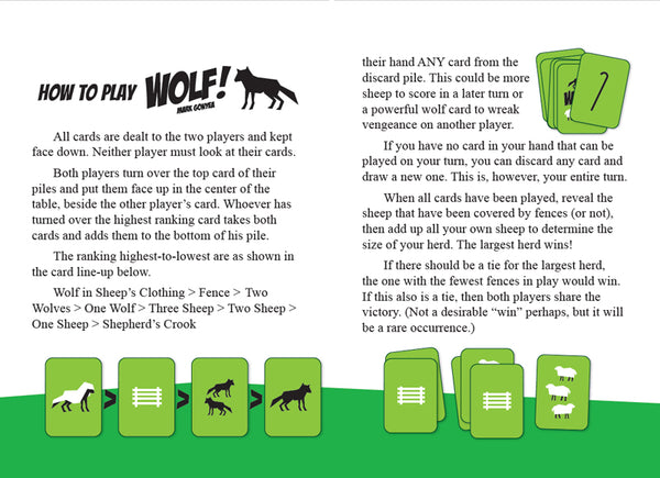 WOLF! is a fun card-flipping game by award-winning children's book author/illustrator Mark Gonyea, combining War and Rock-Paper-Scissors and featuring whimsical designs from the story of the wolf in sheep's clothing. A clever game the whole family can play. Made in USA for 2–4 players age 5+.